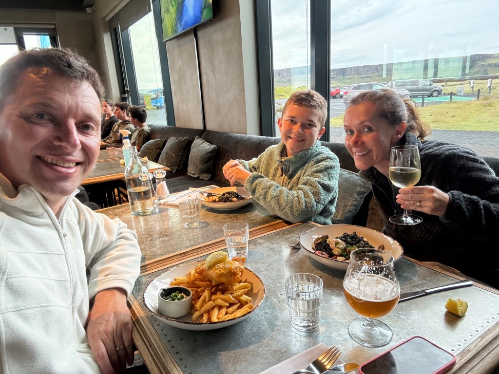 The glacier cracks the whole time and from time to time it valves and releases huge pieces of ice into the water, which become icebergs.The 3 musketeers and the icebergsMommy and sonSomebody really enjoyed the view!After a beautiful boat ride, we decided to eats fish and chips prepared in one of the many food trucks there. Local cod fish, delicious!