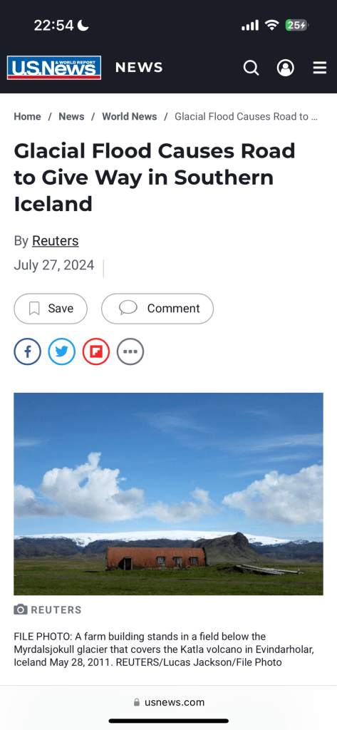 By the way, when we were leaving the glacier national park, we heard a Glacier flooding blocked roads in the south of Iceland. A bridge was damaged and around 70 of roads are blocked. Our hotel is just 10 before the blockage begins, we were lucky today.