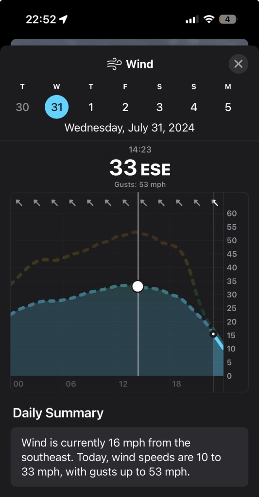 We advanced a bit but the winds got stronger and we had to stop and decide what to do.