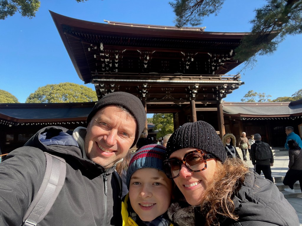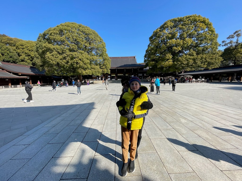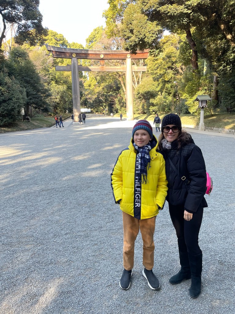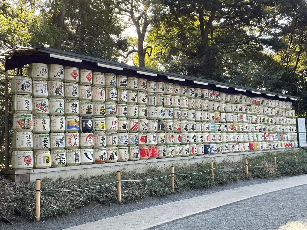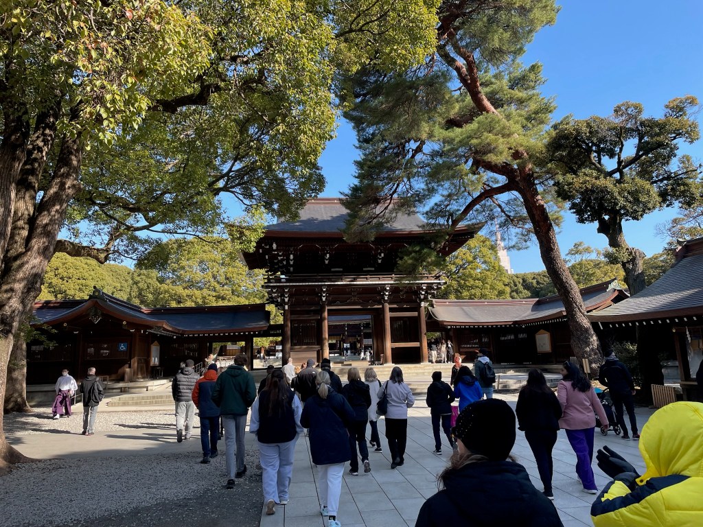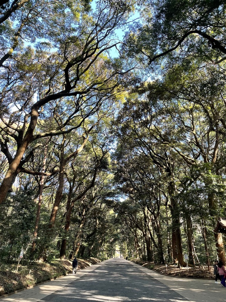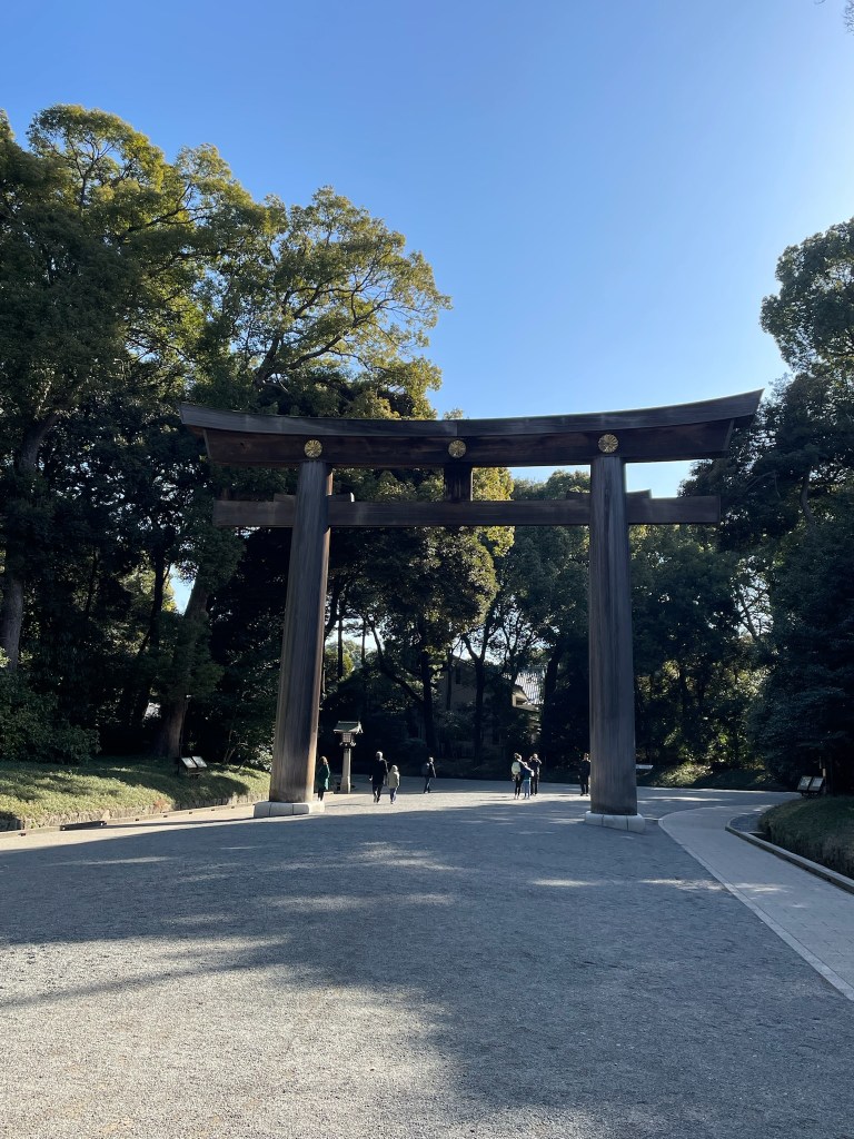 First stop: Meiji Jingu Shinto Shrine. Here some facts about this Shrine “The Meiji Jingu Shinto Shrine is one of Tokyo’s most significant and visited shrines, dedicated to Emperor Meiji and Empress Shoken. Located in a large forested area in the heart of the city, it was completed in 1920. The shrine is a major symbol of Japan’s modern imperial history and Shinto religion, and it attracts millions of visitors annually, especially during New Year celebrations. The shrine is known for its traditional Torii gate, serene paths, and being a peaceful retreat from the bustling metropolis of Tokyo” ChatGPT.