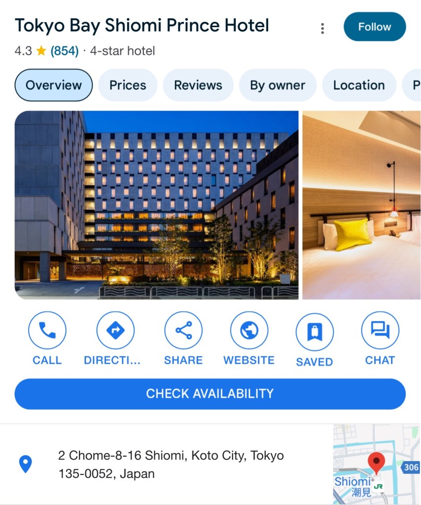 I forgot to mention it on Day 1… the hotel. We stayed at Shiomi Bay Prince Hotel, a 4 Star hotel for a very reasonable price. New, modern, stylish in a Japanese own way. I can only recommend.