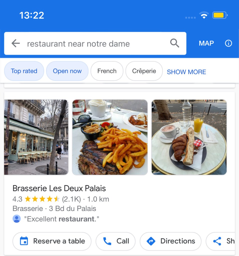 We googled and found this place near the Saint Chapelle. A typical French restaurant, with tables at the sidewalk, all we wanted to try!