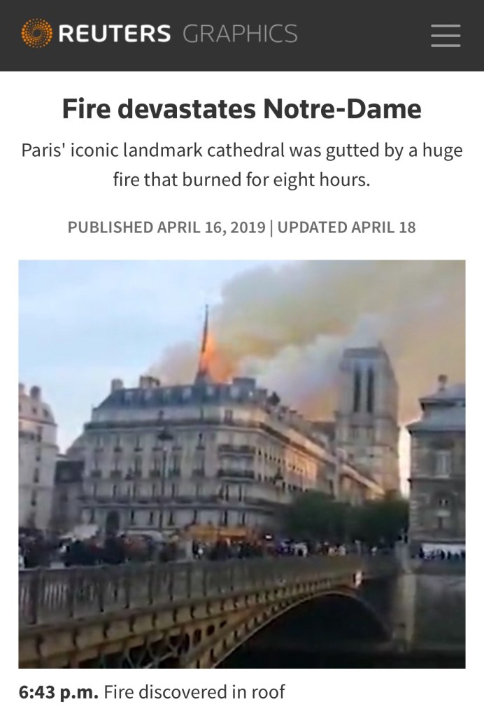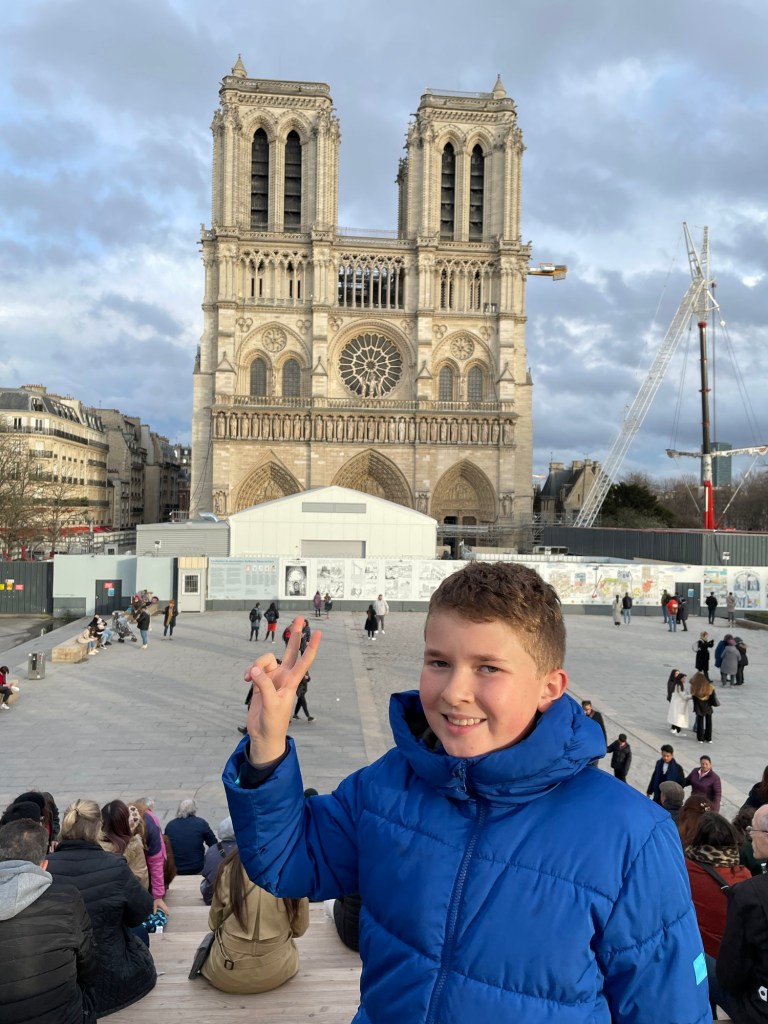 Facts about Notre Dame: “Notre-Dame de Paris, completed in 1345, is a Gothic cathedral known for its stunning architecture, stained glass windows, and iconic gargoyles. Located on the Île de la Cité, it’s famous for hosting historic events. A 2019 fire severely damaged its roof and spire, sparking global efforts for restoration” ChatGPT.