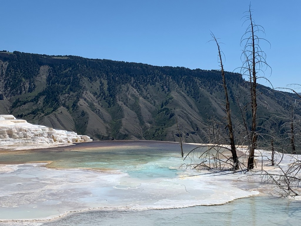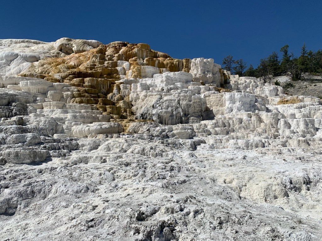 What is the mammoth? “Mammoth Hot Springs in Yellowstone National Park is known for its unique limestone terraces, created by hot water from underground springs depositing calcium carbonate. Constantly evolving, these formations are a striking natural feature. Located near the park’s north entrance, it’s a popular destination for visitors.” ChatGPT.