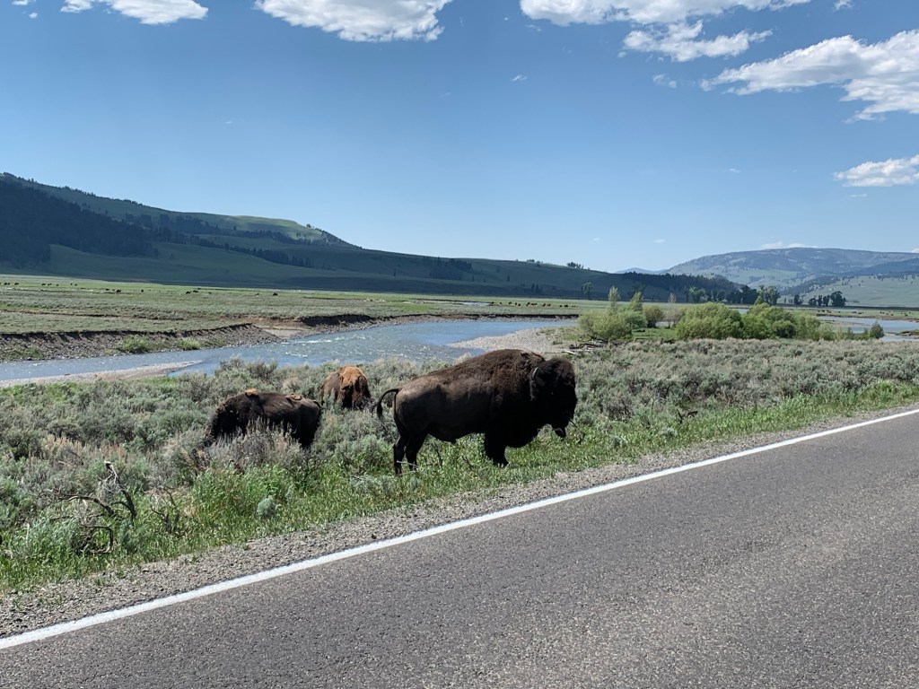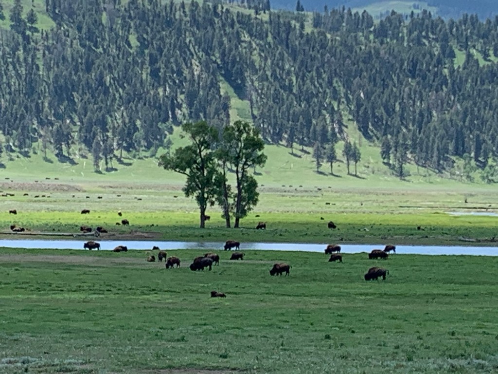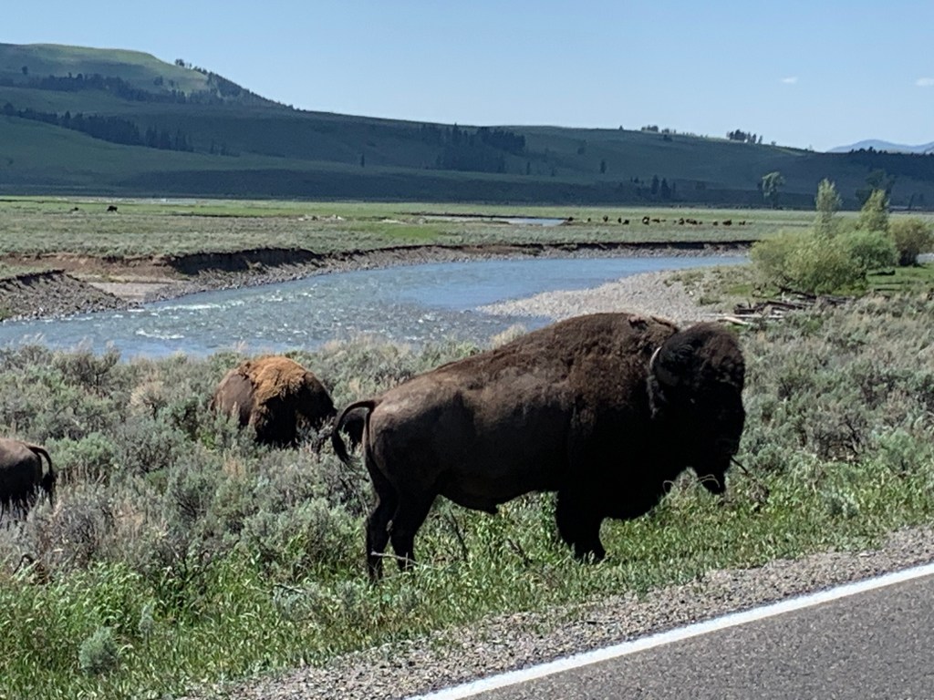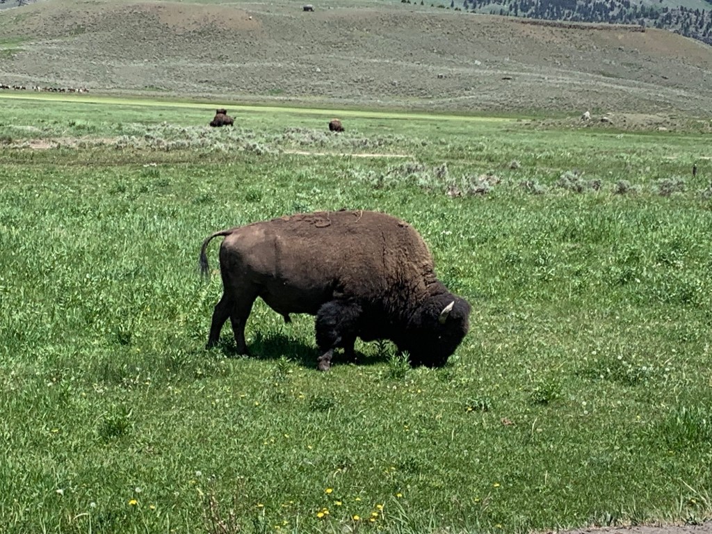 Further to the northeast of the park at a place called Tower Junction, while driving, we saw for the first time in our lives an American Bison!!