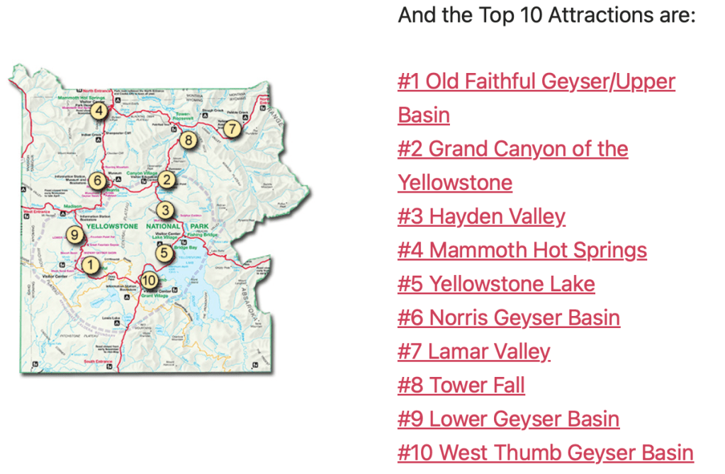 Go to the official website of Yellowstone to learn about each one of the main sightseeing spots. Click here.
