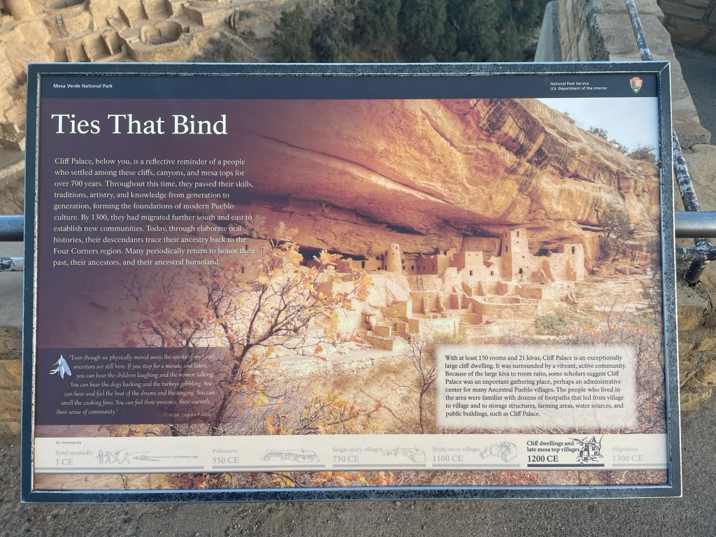 “Mesa Verde National Park, in Colorado, preserves the ancient cliff dwellings of the Ancestral Puebloans. Designated a UNESCO World Heritage Site, it features over 600 archaeological sites, including the iconic Cliff Palace. Visitors explore rugged canyons, scenic trails, and rich cultural history, offering a glimpse into Native American heritage and ingenuity.” from ChatGPT.