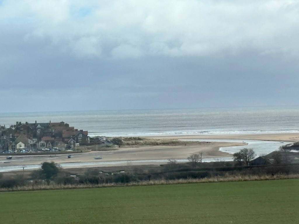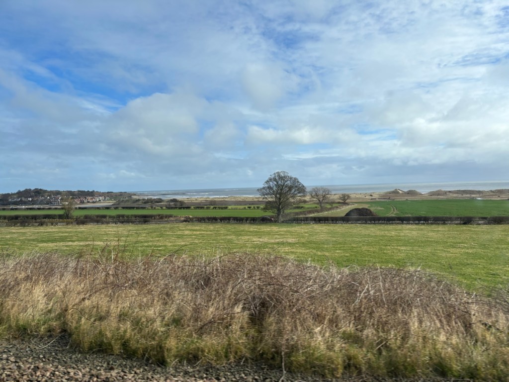 Gate 5 – LNER Azusa to Edinburgh Waverly. The train is hitachi and Japanese.Here we are, before we tipped the hot chocolates all over the place. 😅Somebody is tired.Beautiful sceneryThe ocean