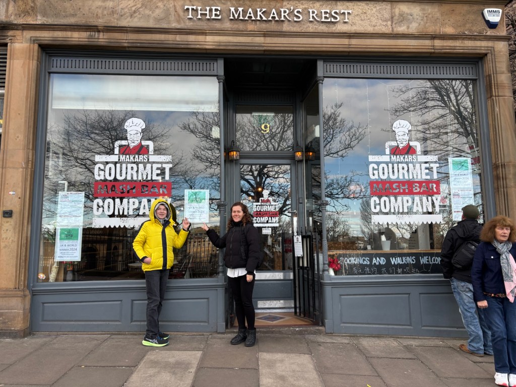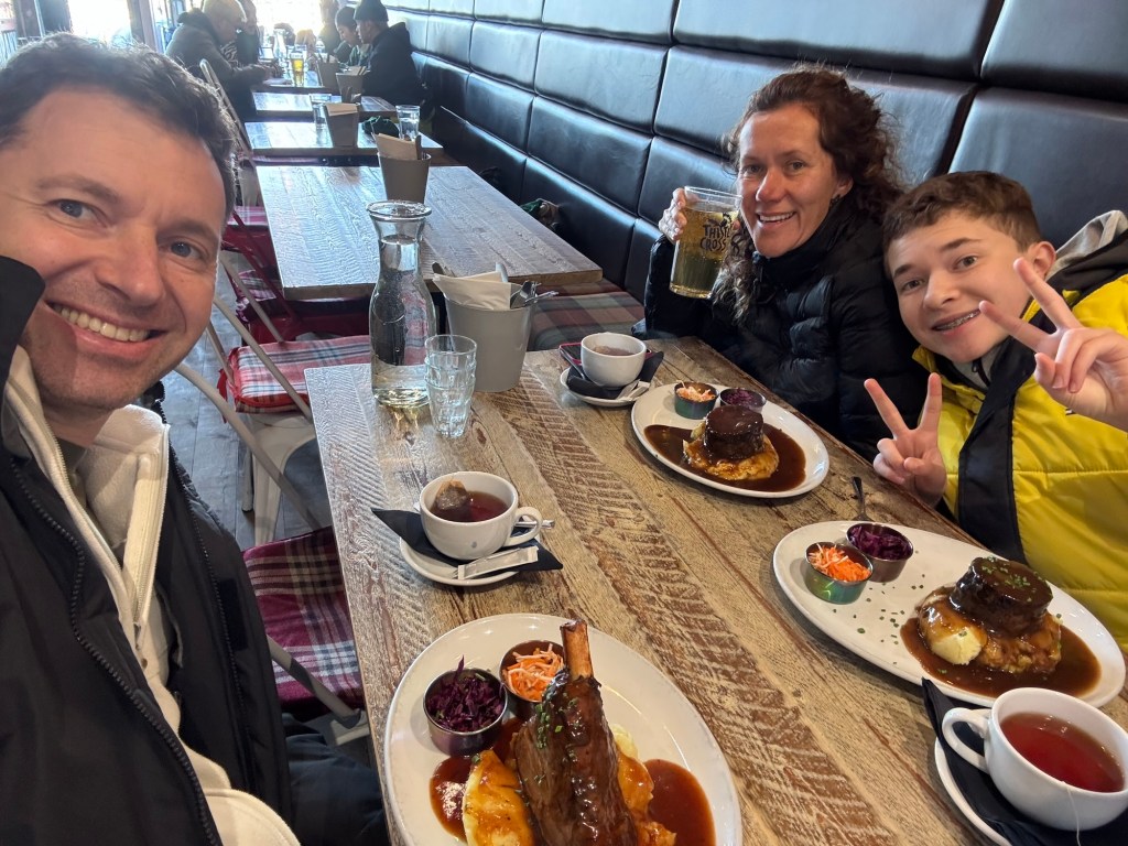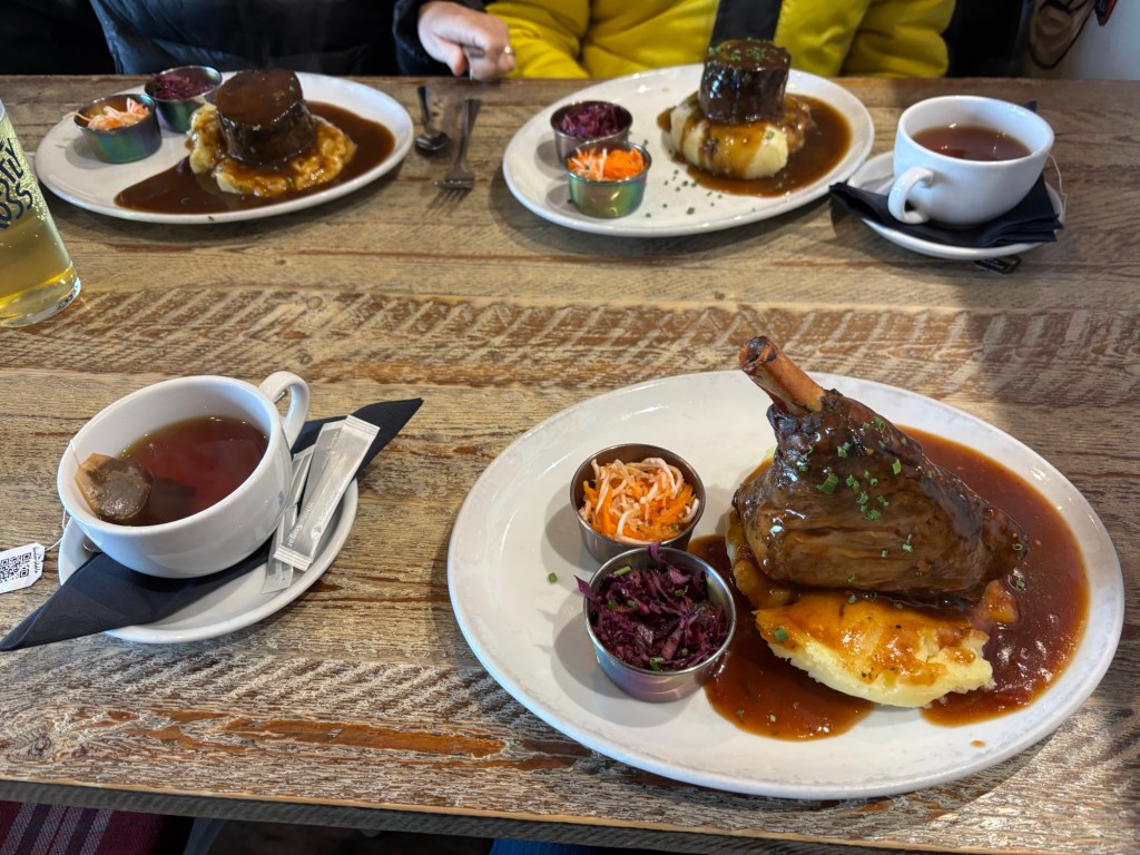 Edinburgh Waverley StationLook at Edinburgh old town. Massive stone block buildings and bridges at cobblestone streets. The architecture reminded us of Budapest.Architecture in Old TownThe old town is on the top of a hill. You have to regularly go up and down several alleys and stairs.We were hungry and decided to have lunch before the first tour. We googled and found this gem. 4.9 Google starts with nearly 10k reviews.It is considers the 1st best restaurant in UK in 2024 according to TripAdvisor.