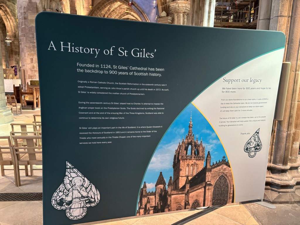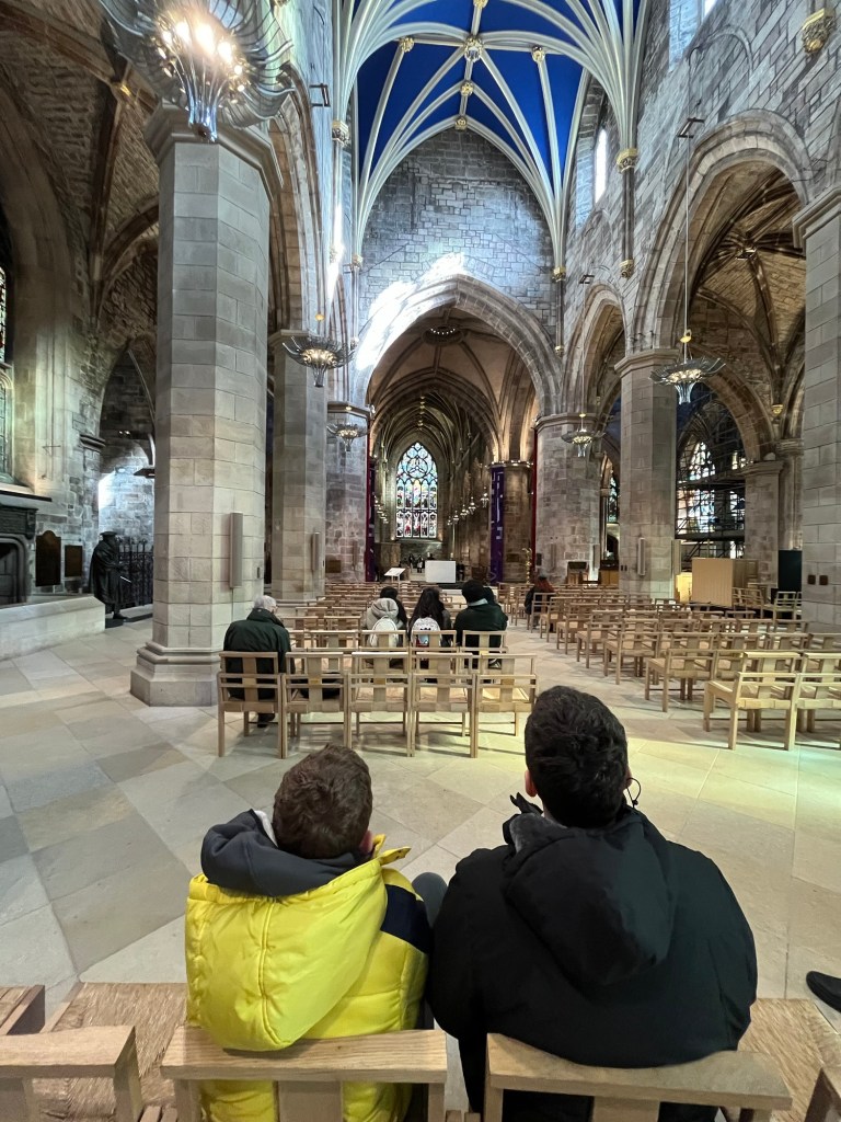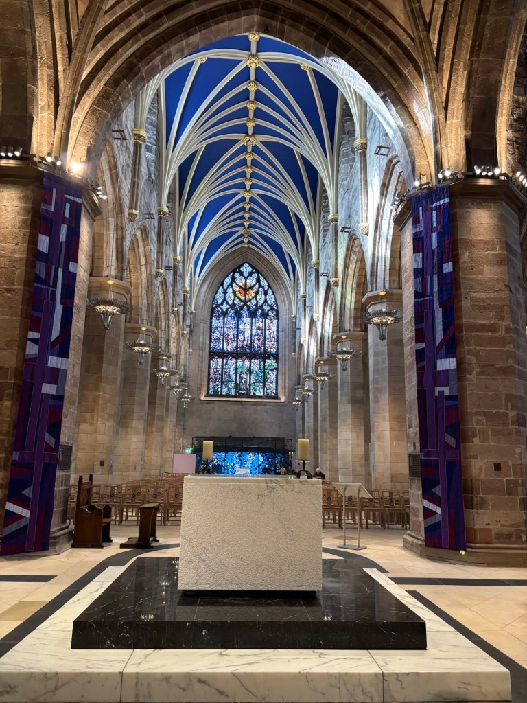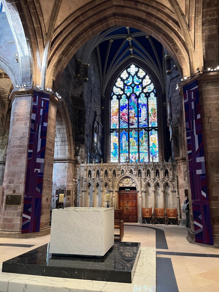 St. Gile’s ChurchIt was built in 1124… 900 years old! 😳Look at this place. The altar is located in the center of the Church., offering 4 sitting areas 360o around the altar. Look at the ceiling.These are the battle flags from hundreds of years ago. After every victory, the flag used in the battle was brought to the church.Scottish people are also proud for having developed the anesthesia with chloroform in 1847.