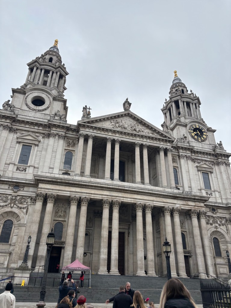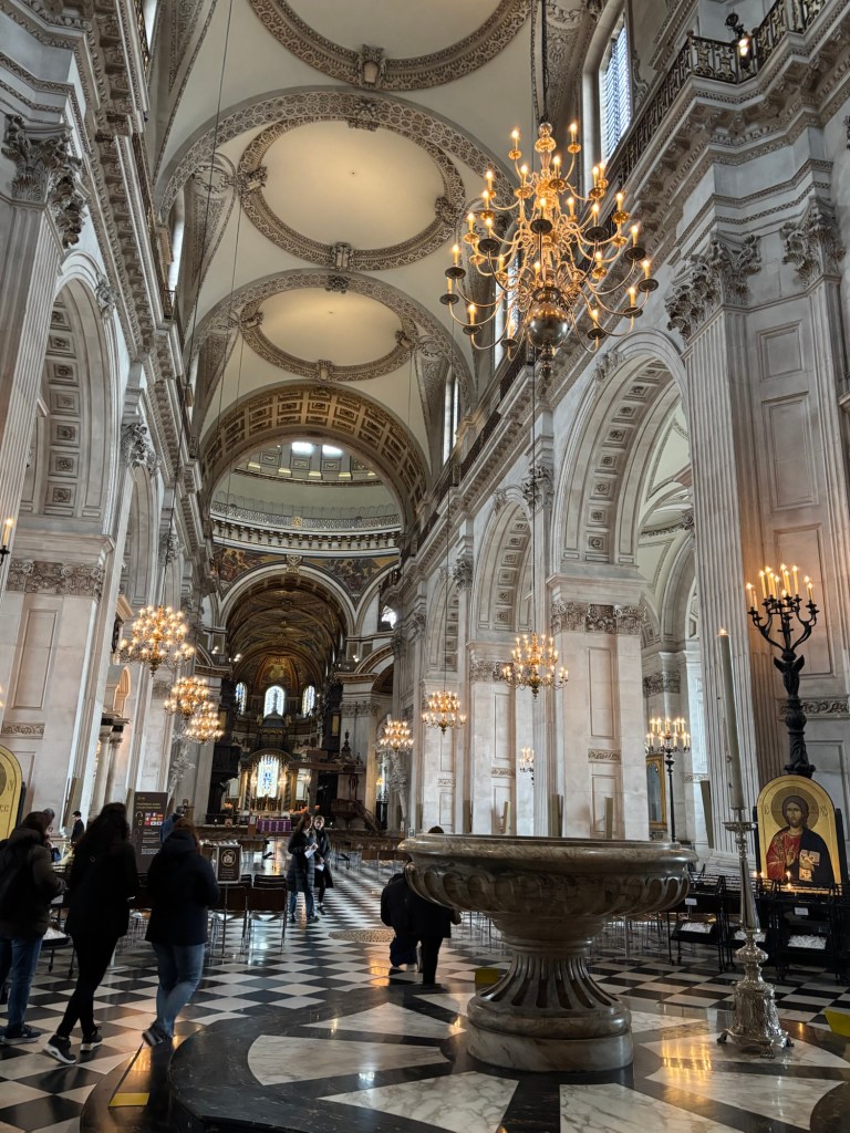 A blurry photo of me and my dad getting in a black cab to the coach station!Westminster Abbey spotted on the way to St. Paul’s cathedral.Soon after we got on the bus, we arrived at St.Paul’s cathedral! It looks very very grand!The interior of the magical and very very big church!⛪️A wall of how cathedral was, it was that because of pollution, before renovations in 2001-2005 that exposed its true wonderful glory!The beautiful and intricate dome!!A wonderful structure about a mom and a kid!!!