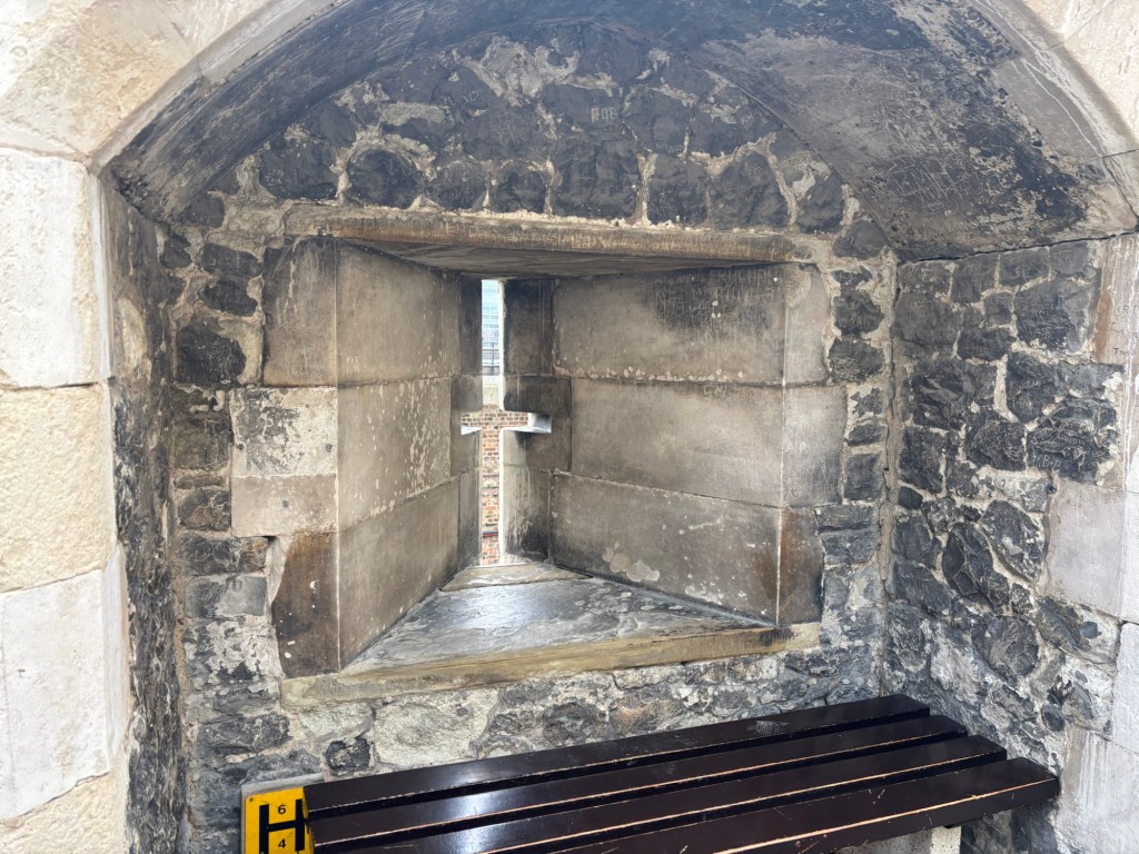 The Tower of London hat a moat.This is the white tower, the original and main construction. It is surrounded by other buildings sand 2 outer walls to protect it.Look at the date.Exhibition of royal artifacts inside the White tower.Look at this!Chapel inside the White tower.These narrow cuts in the wall were a great solution to protect the archers and at the same time provide them room to shoot the enemies outside.This is the famous traitors gate. All traitors were brought through these gates to be executed inside the walls.In this building the Crown Jewels are at display.