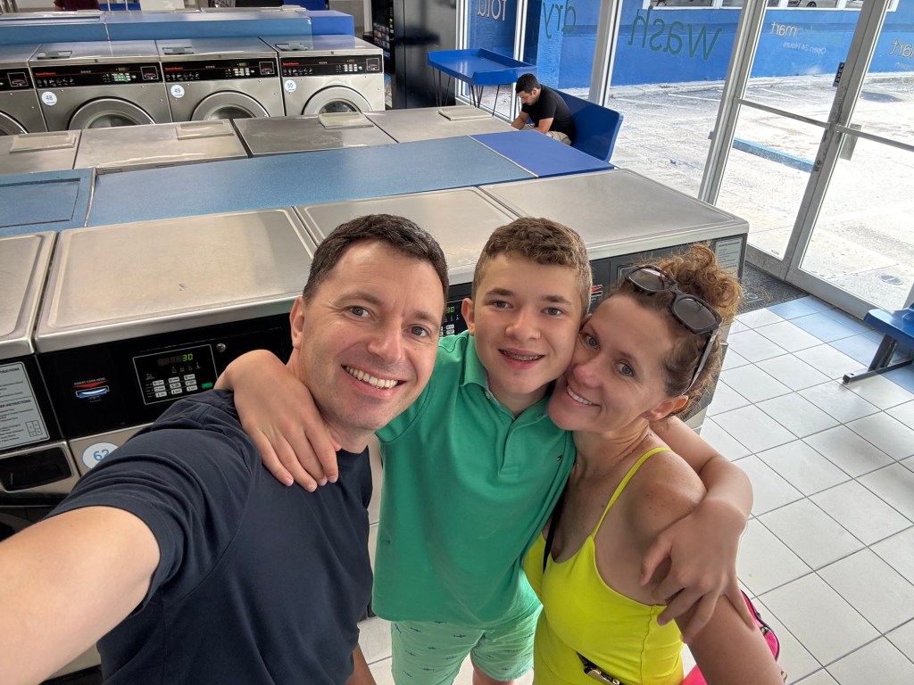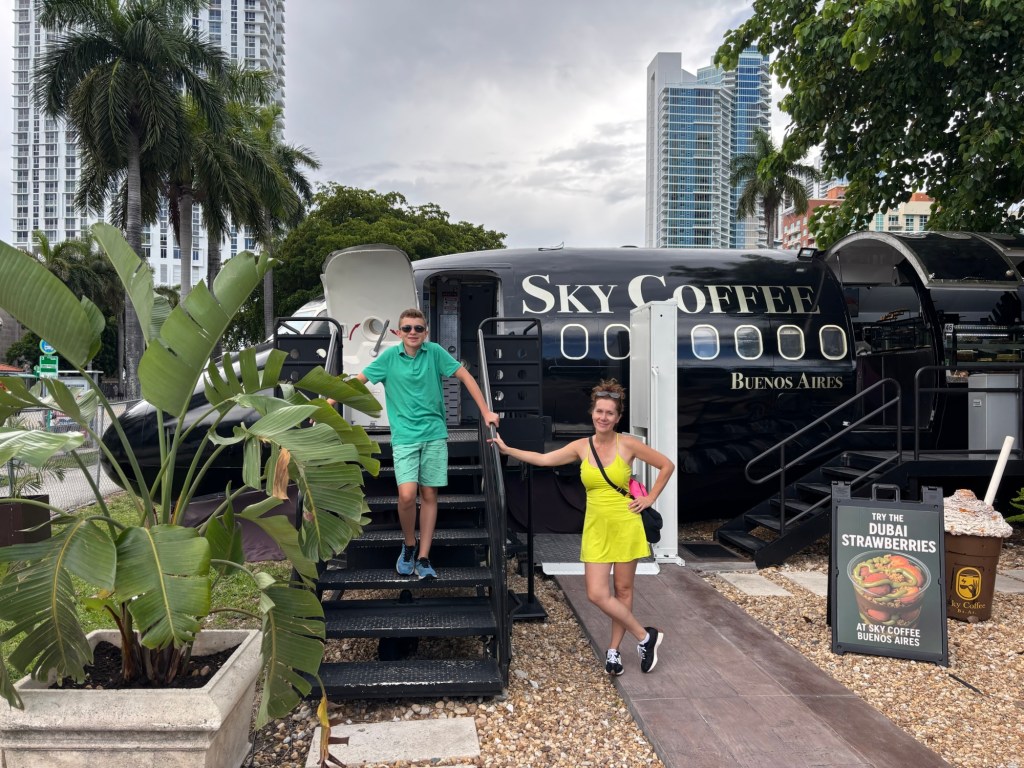 Our journey after eating some delicious breakfast at the hotel to the laundromat!We made it at the laundromat!The LoanDepot stadium! It is home to the miami marlins(a baseball team!).Mom and dad at the Argentine sky coffee at miami!( A part of a MD-80 jet!)