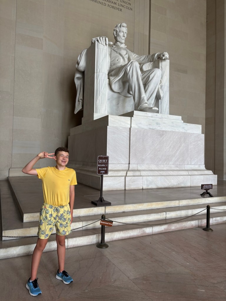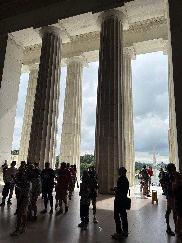 After we woke up at the hotel 🏨, we went to get some breakfast!!How the café looks.Look, the IMF (International Monetary Fund).Look at what we found in the streets of Washington!Wow!Then we walked to the world war 2 memorial!! A lot of sacrifices here.Very true Words here.The view of the Lincoln memorial! A great president!At the other side, the Washington monument!Look who came to greet us!Abraham Lincoln here!!!Look where we are!The view from inside.This is how we went back to the hotel.