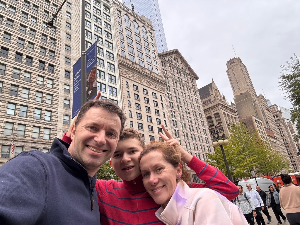 After waking up at 2:30h in the morning, We went to the airport at 3 AM!We reached the airport! The plane about to land at Chicago!!Us disembarking the plane to Chicago!!!!We arrived at Chicago airport and waiting for our Uber!After arriving at our hotel, we decided to go to Quartino Restaurant just down the block! The food was very very good!The entrance of the restaurant! Chicago actually has a marathon tomorrow!These are nice historic buildings mixed with modern architecture!Here we are! The Chicago River!The Chicago riverwalk!!!!!Chicago subway train!A view of the road with the train tracks above.A Chicago theater landmark!!!!!Look!! A Federal Reserve Bank!Chicago Board Of Trade! Another Chicago Landmark!!!!!!!A road in Chicago!!!!!Me waving bye to a train!!!!Us posing in front of the Art Institute!Look! Some historic buildings in Chicago!The whole row!!!!!The Crown Fountain in Chicago!!!! Wow!!!The park in Chicago!Wow!!!! The bean 🫘 monument. Officially it is called Cloud Gate.Bye riverwalk!!!!